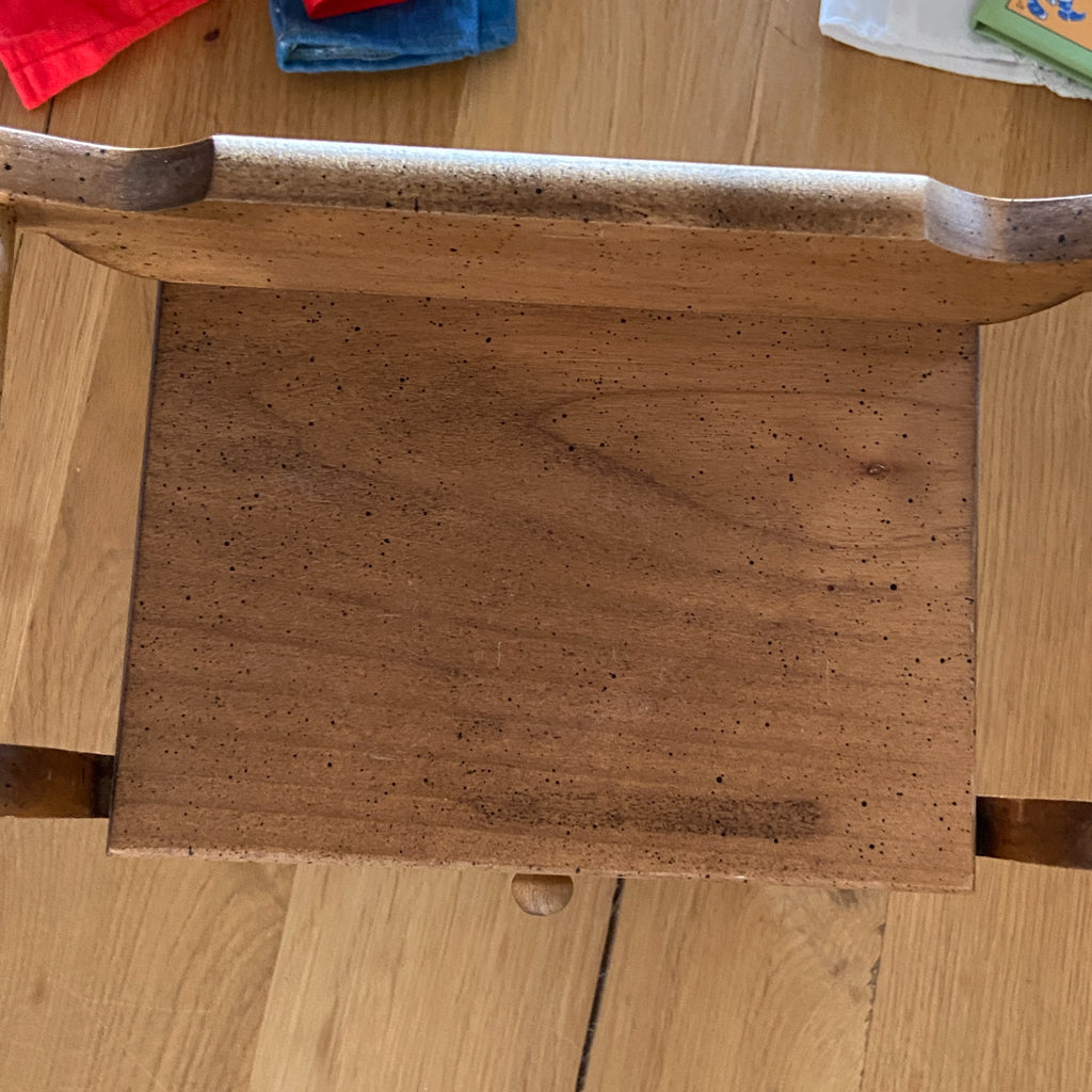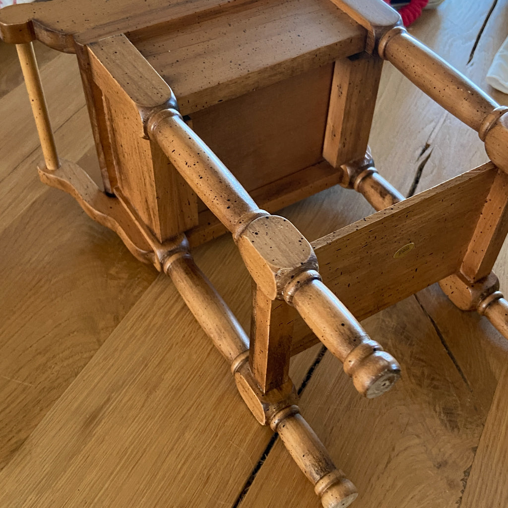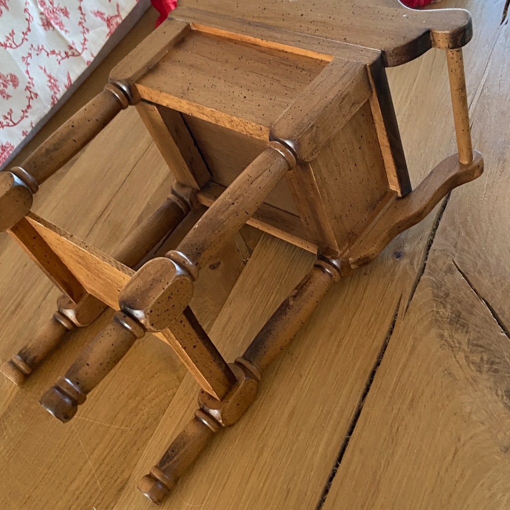 Knob comes loose, but it stays in place for display. Please see scratches and rubs that are super common with Addy's furniture.
