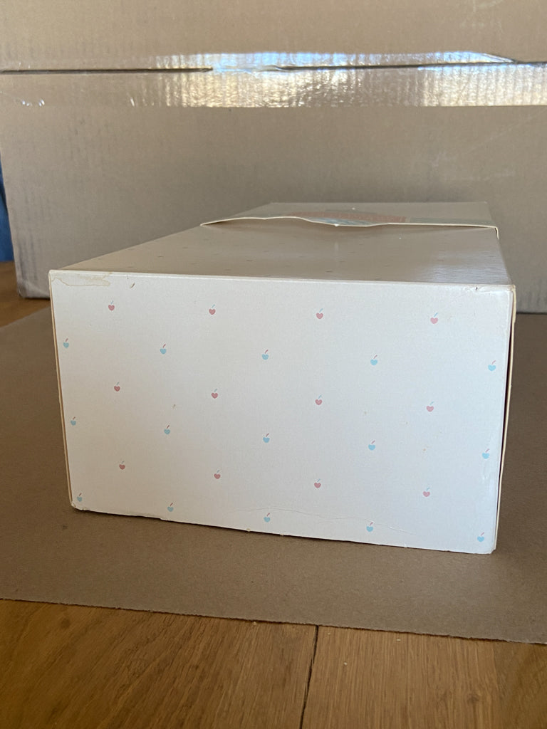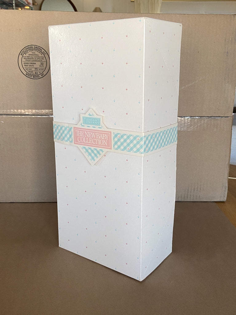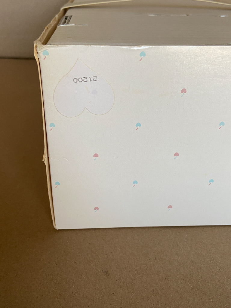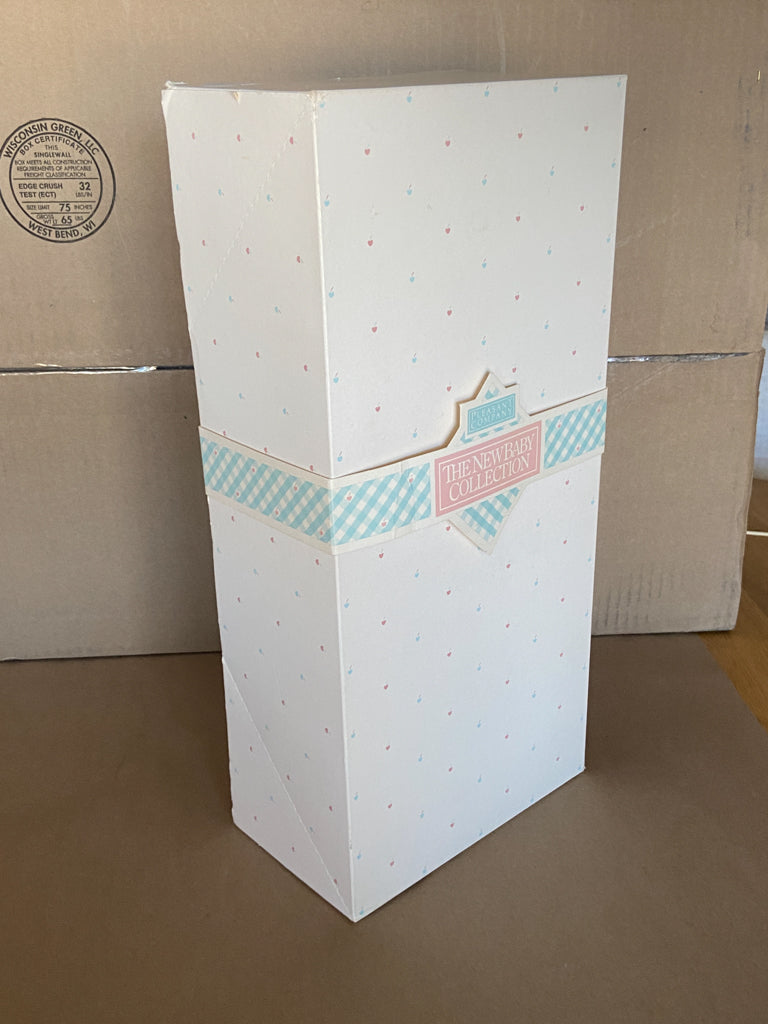 Poor baby has a dent in its head. Overall it's still super fun to have a New Baby doll that feels this new. One eye tends to stick, but this is extremely common with the Asian New Baby's. Box isn't perfect but overall pretty good! Some heat would probably help reshape its head. Doll has maybe been taken out of the box before, but I didn't remove it just in case.