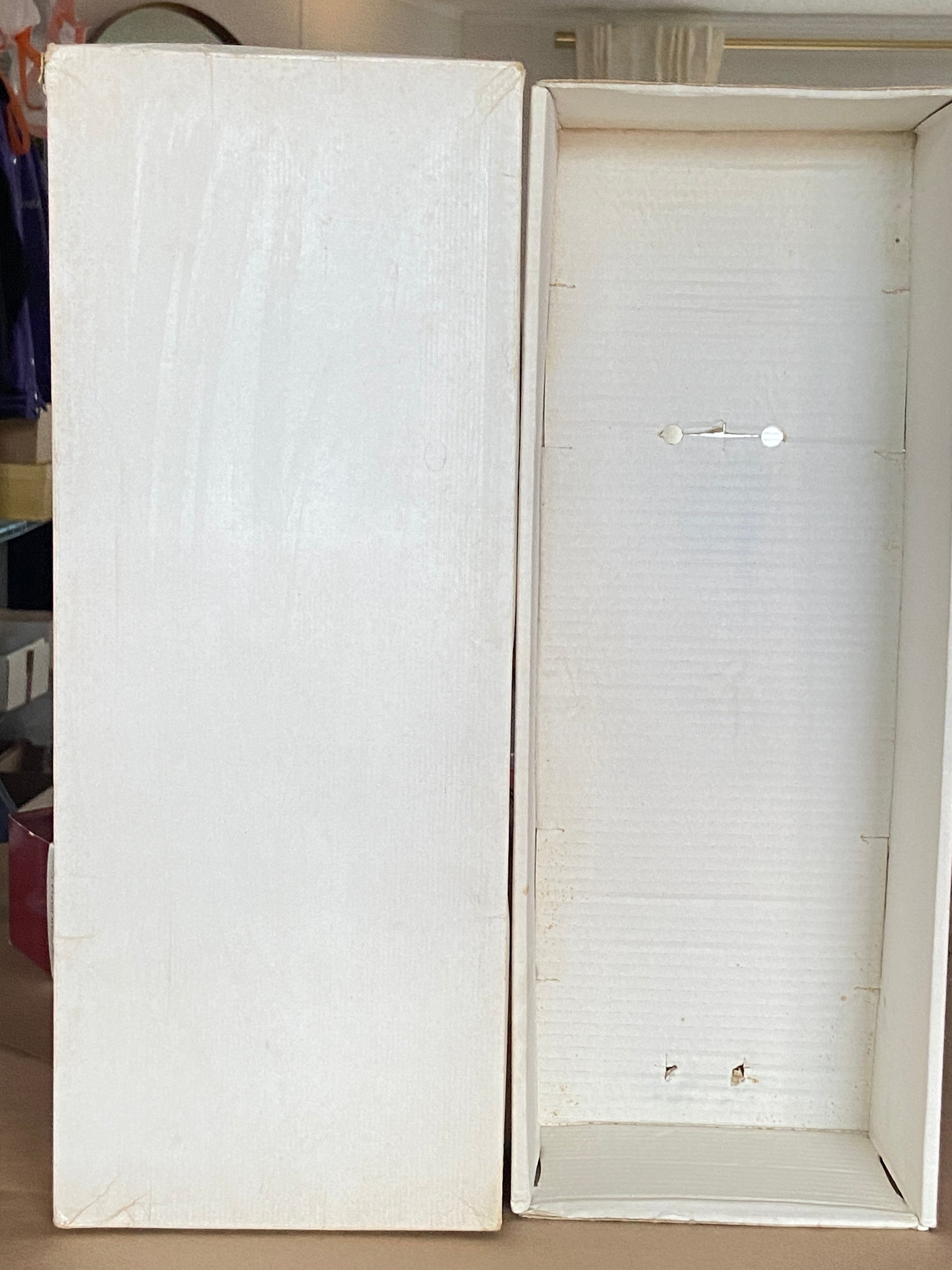 This box isn't original to this specific doll, but it came with my #6.1 doll that I'm keeping. It's an authentic 6.1 box as denoted by the feature code on the box bottom. BKDB = Black Hair, Dark Brown Eyes. So this could not have come from a #6.2. Please note extensive wear and possible water damage to the box. I believe it's all stains and nothing active that could spread. If you plan to throw the box out, please let me know and I will keep it and give you a $50 refund.