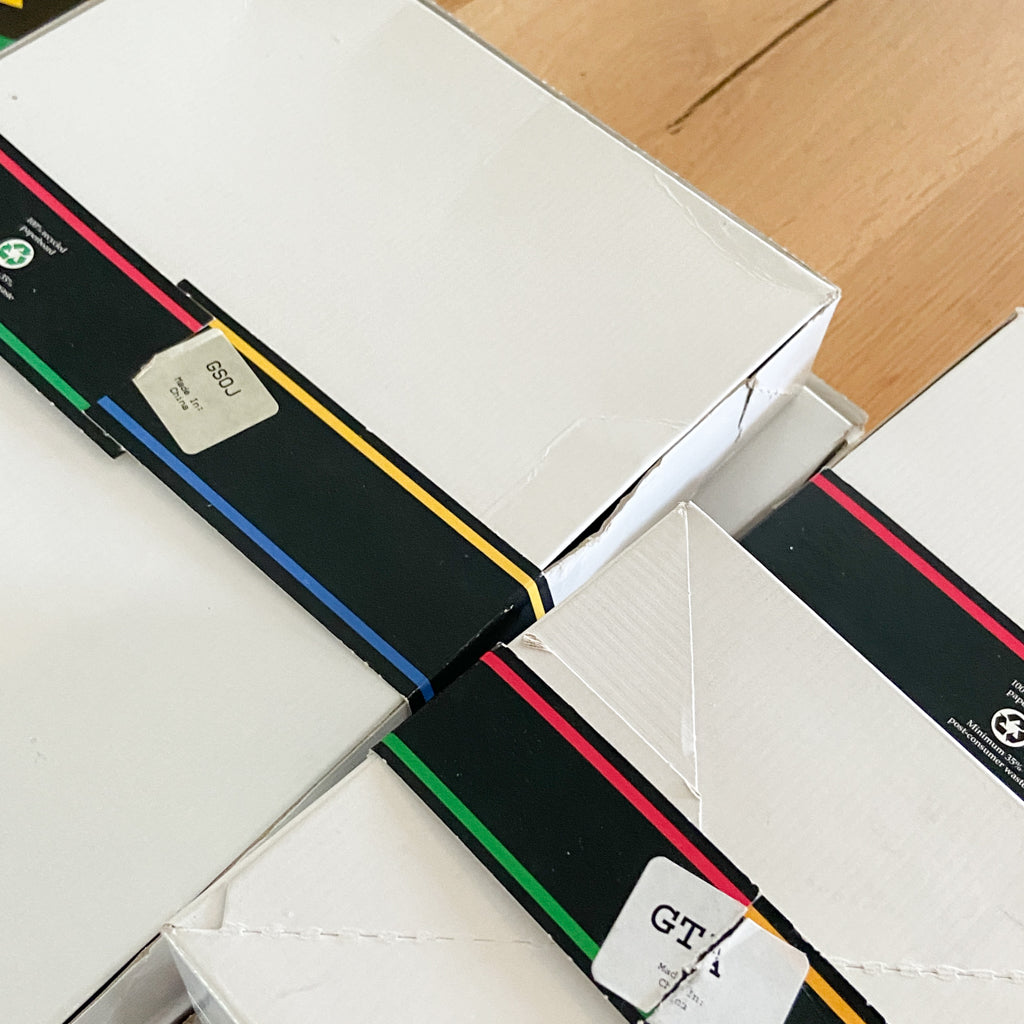Items are shipped in reused boxes and packaging, to help keep them cheaper and be gentler on the environment.