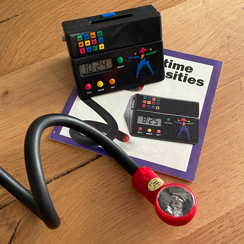 This set is kinda hard to find! Clock works, batteries included. Lamp does not work
