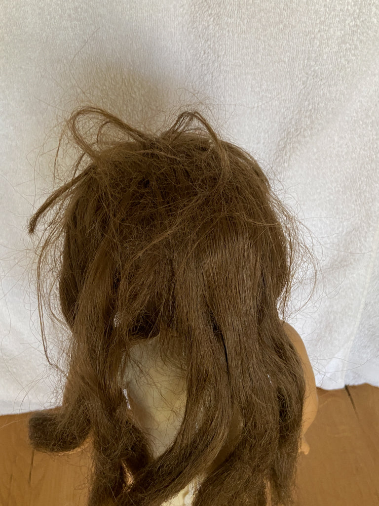 1987 Big Tooth Molly in need of some TLC. Her hair is matted so I'm not sure if it's thinned, but it likely will be once it's detangled. She has bubble eye in her left eye and is overall dirty. She'll clean up great though!