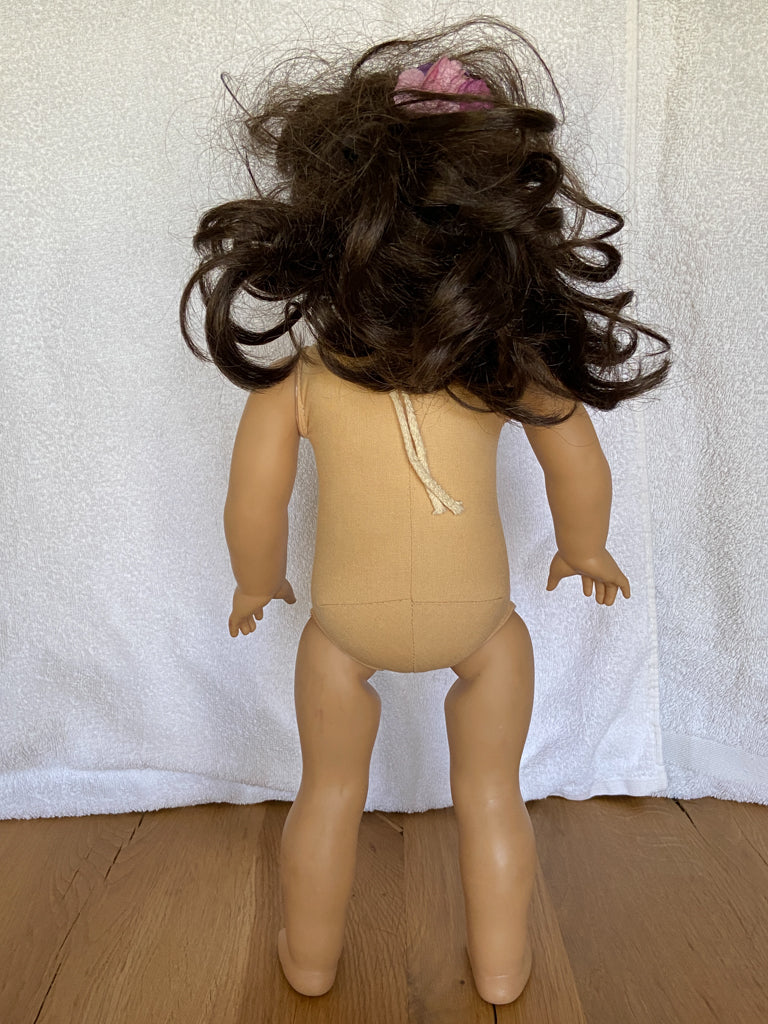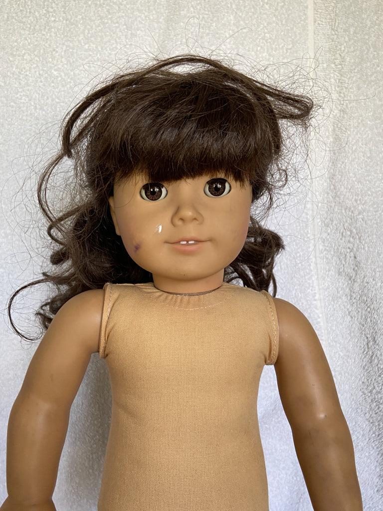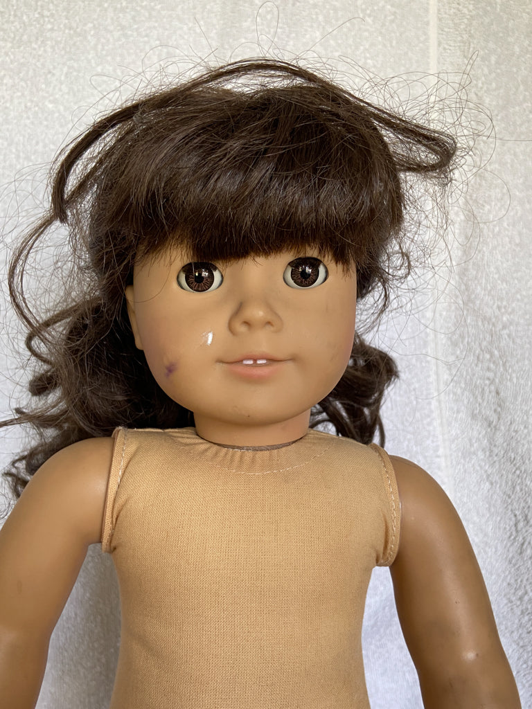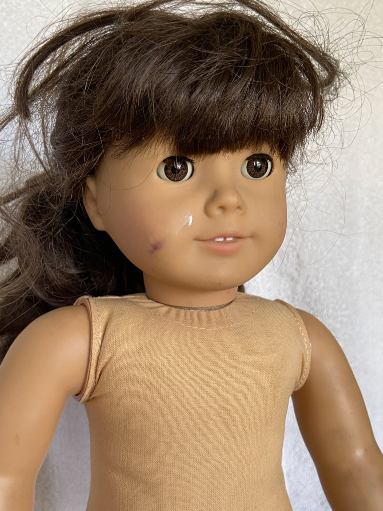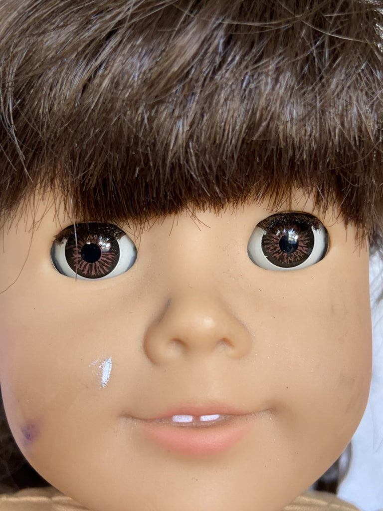 A super cute Samantha that seems to look right at you. Her eyes are either "coral" or "cinnamon", as collectors have named them. I'm not sure which one, as it doesn't really affect the value. She'd be from 1992-1994. She has eyes that remind me of "dreamer" eyes, but I can almost guarantee you most people in Facebook groups will tell you she's not a "dreamer" Samantha, so keep that in mind when purchasing.