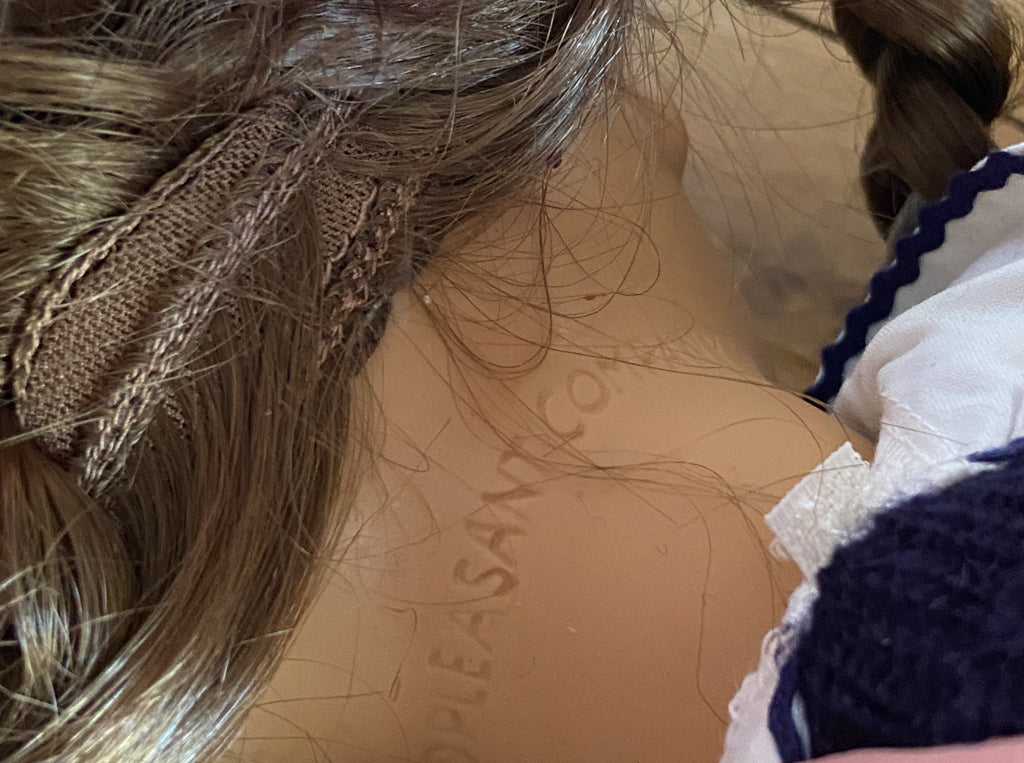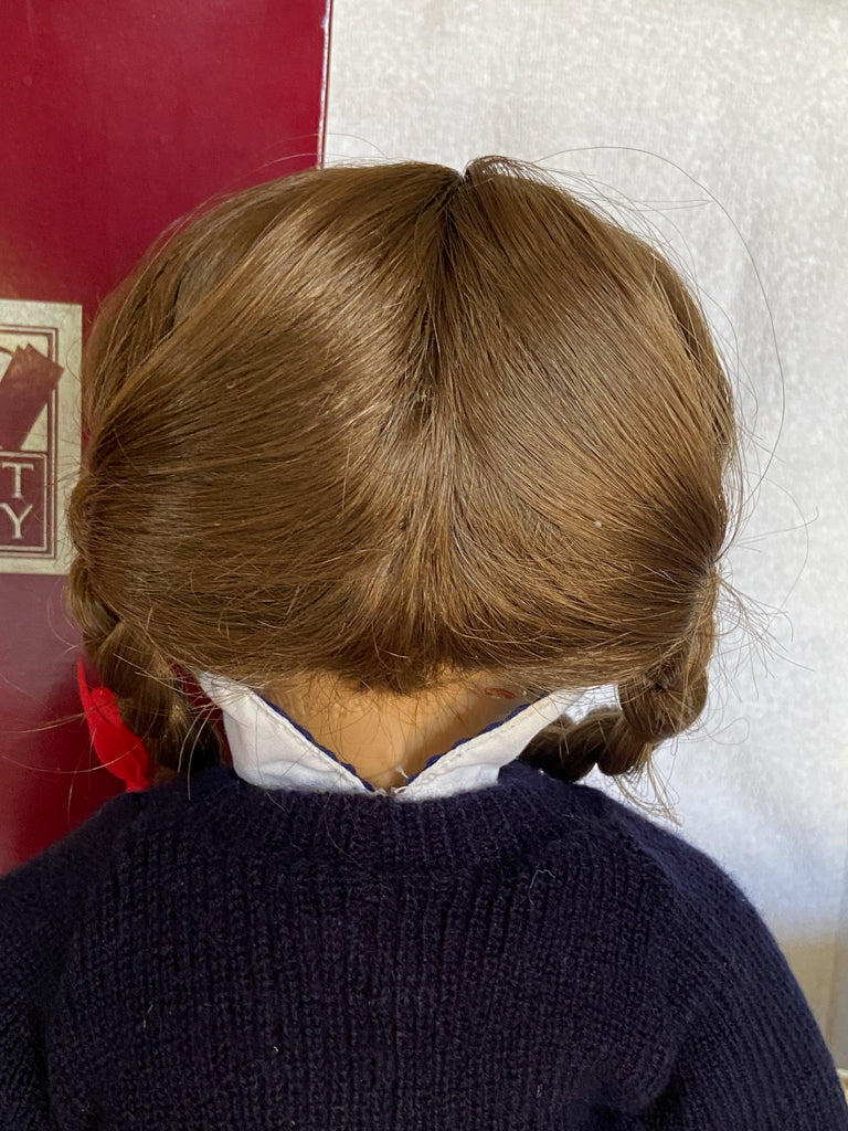Doll has her original factory braids, and is completely original with no touchups. Her braids have some flyaways but overall look really great. She has her original stringing that's remarkably tight for her age, and she can stand on her own. This is just about as good as it gets for a signed doll, and having a number this low is truly a treat.
