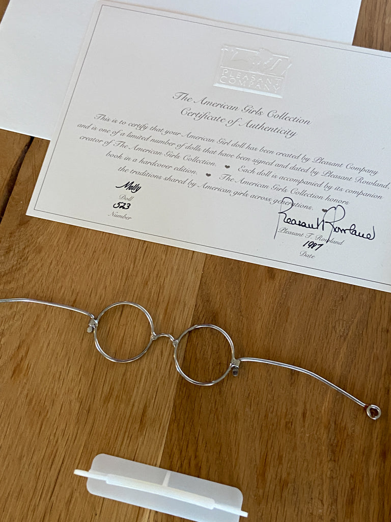 Her eyes have the original paint with a tiny bit of silvering, which is extremely common for Molly dolls this old. It's so difficult to find them without at least some silvering.
